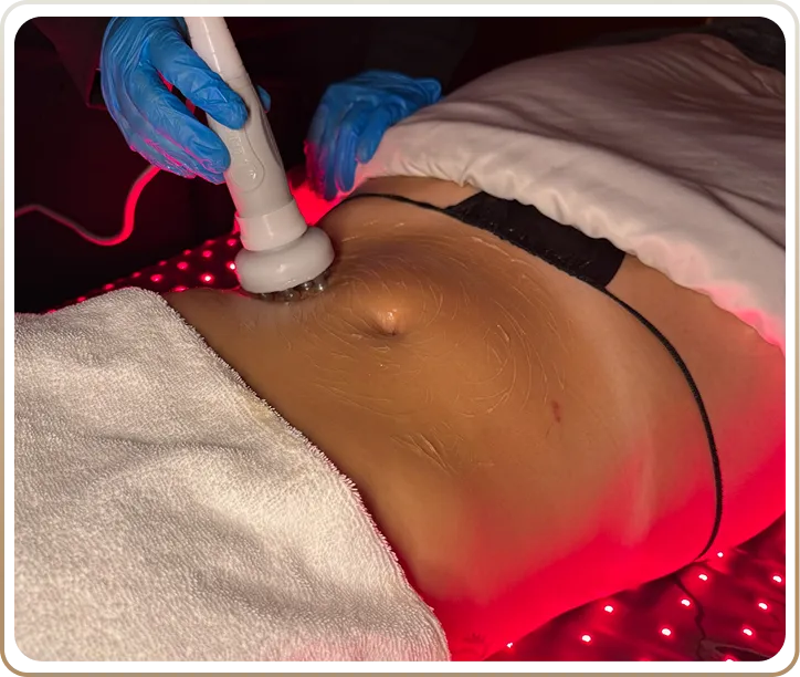 You’ll enjoy an 80-minute session combining ultrasound body sculpting, red light therapy, and a 35-minute facial massage. Our trained specialists guide you through each step for maximum results and comfort.